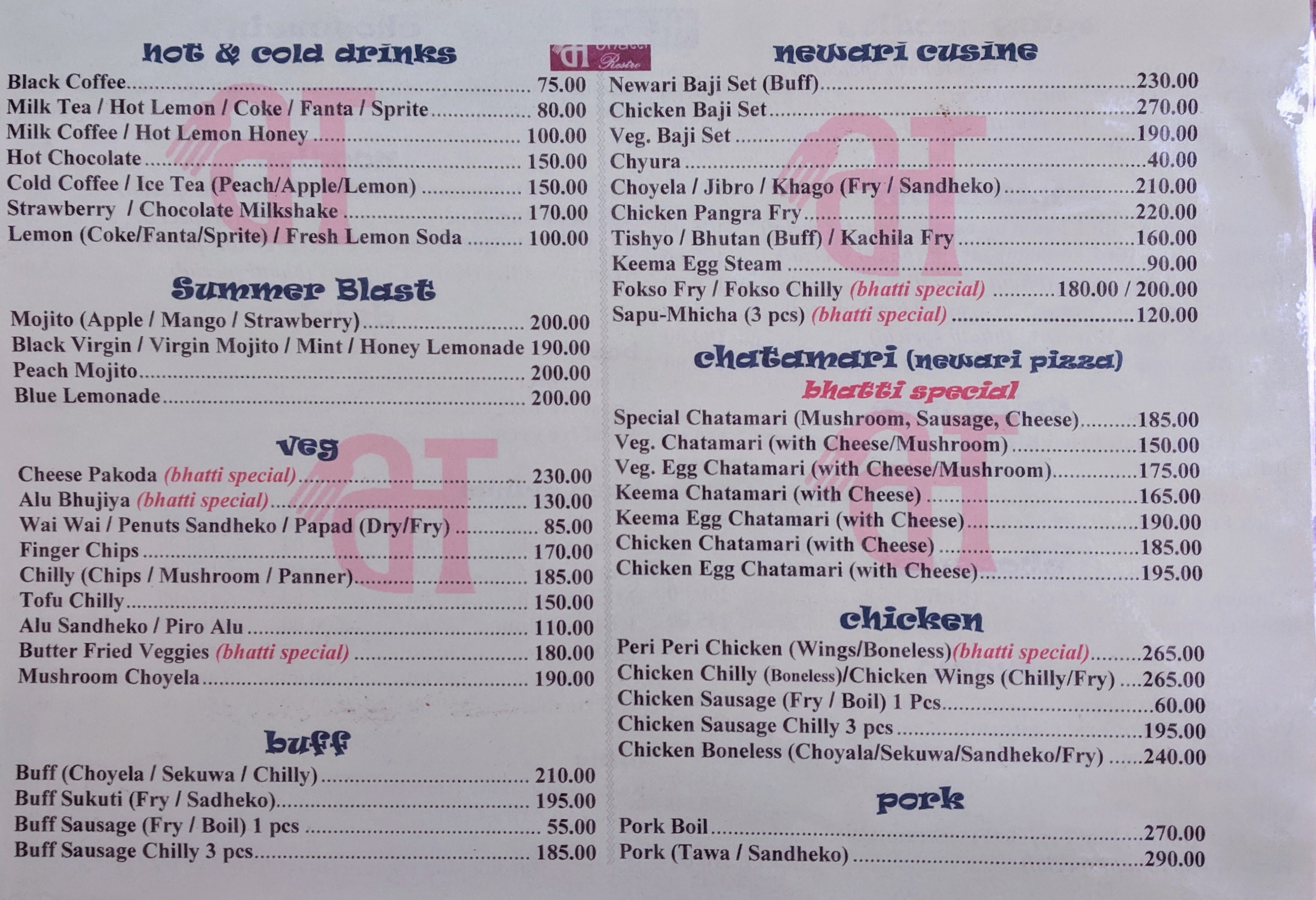 Bhatti Restro is one of the affordable and good restaurant to hangout in Basantapur. The price of the food is so reasonable as compare to other restaurants in Basantapur plus they dont charge any extra charges( VAT, SC). Also you can enjoy beautiful view of Basantapur from the restaurant .